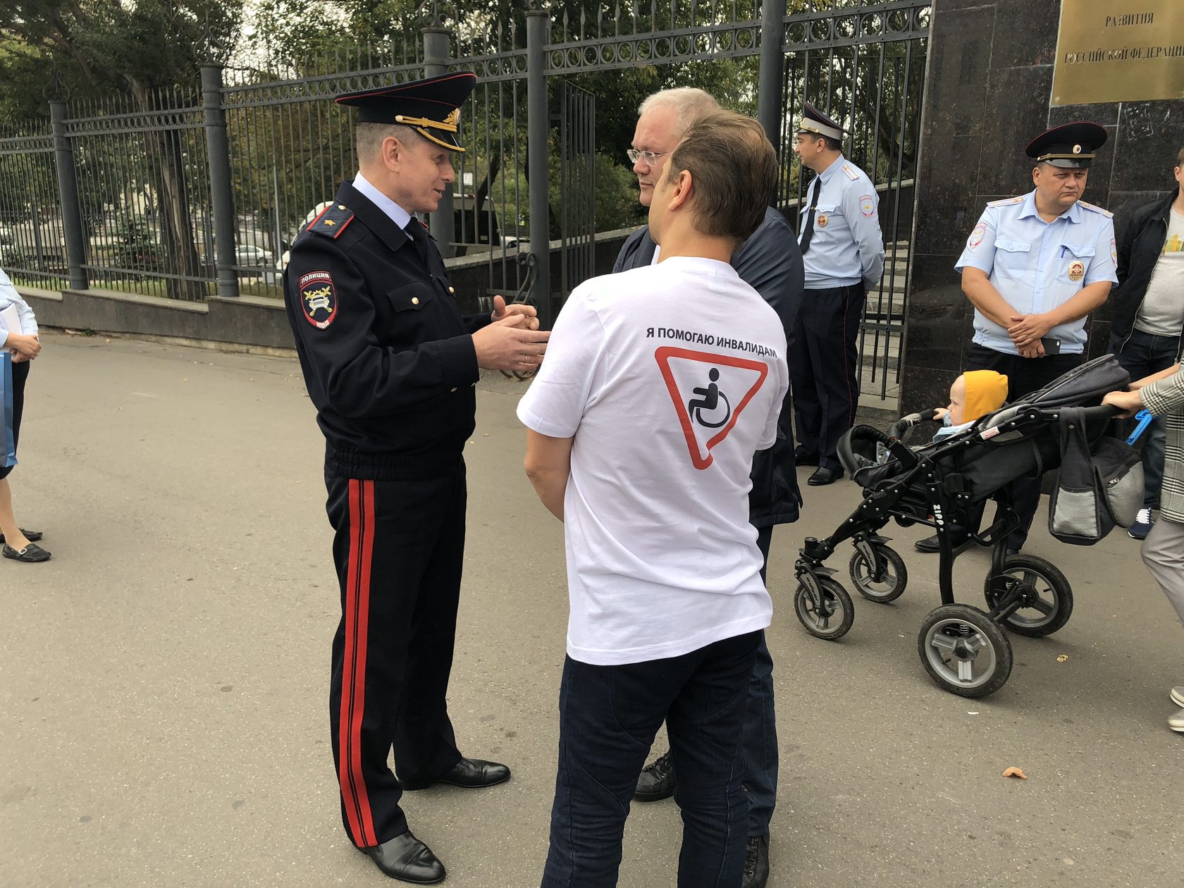 «Сотрудники столичной Госавтоинспекции совместно с членами Общественного совета ГУ МВД России по г. Москве, Общественной палаты города Москвы и представителями социального проекта „Я помогаю инвалидам“ провели рейд по местам парковок транспортных средств людей с ограниченными возможностями.. Целью проведенного мероприятия являлось повышение доступности автомобильных парковок для людей с ограниченными возможностями и привлечение внимания общественности к проблеме.